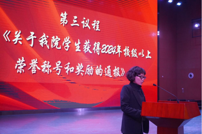 张楠宣读《关于我院学生获得2024年校级以上荣誉称号和奖励的通报》。