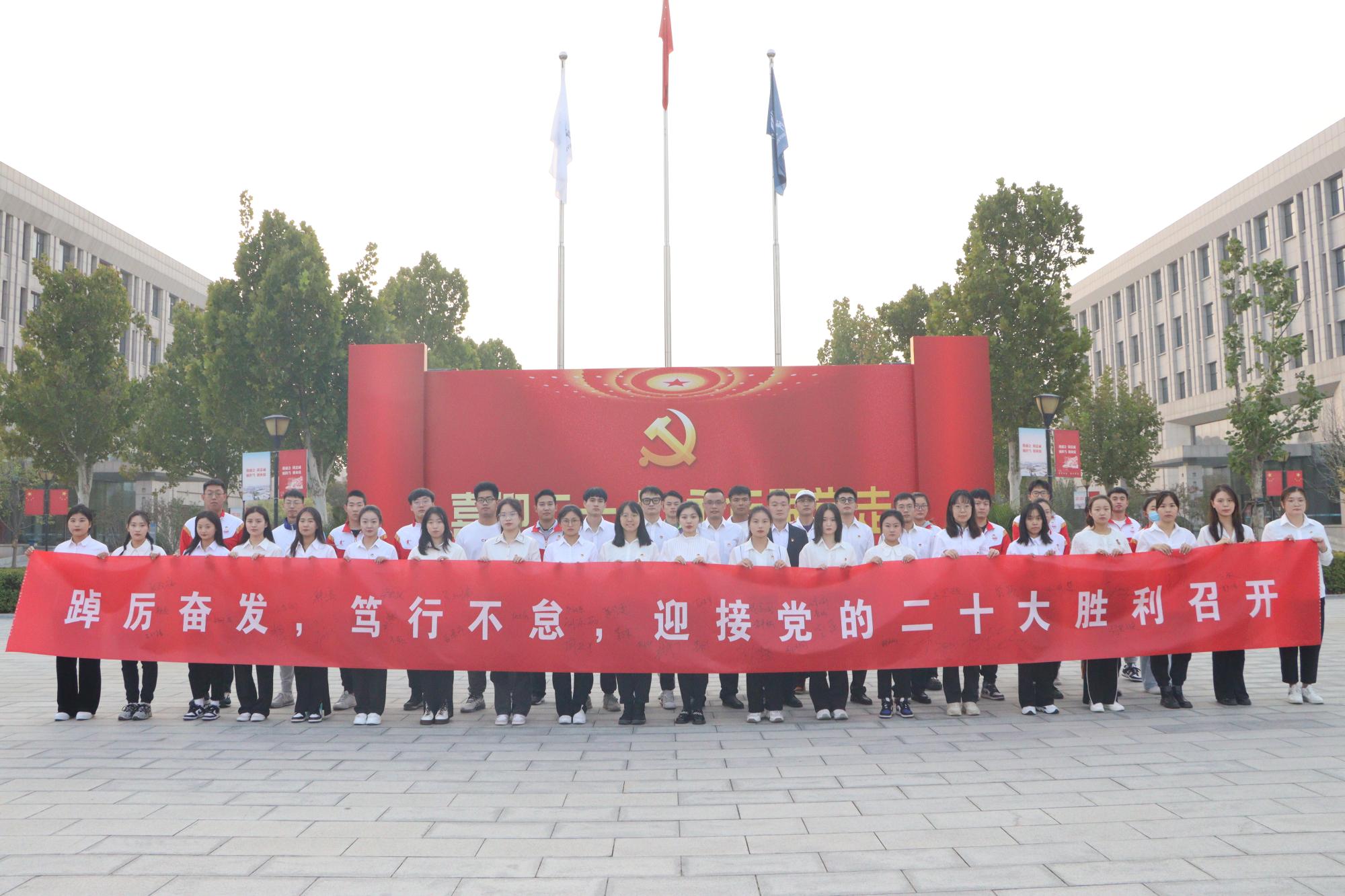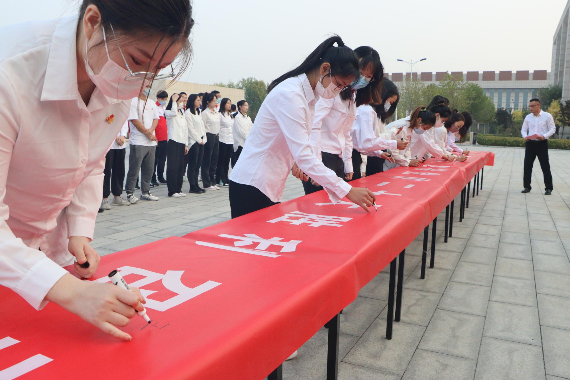 活动中,学生党员们在社会体育指导研究生党支部书记靳庆伟的带领下,面向党旗,庄严宣誓。随后,同学们依次在印有“踔厉奋发,笃行不怠,迎接党的二十大胜利召开”字样的横幅上签名,表达出新时代大学生党员以昂扬的精神状态,坚定不移听党话、跟党走,勇担新时代责任的决心和信心。