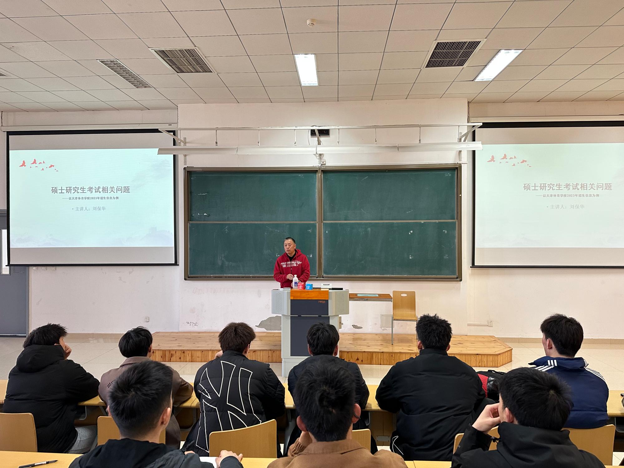 动员会上,刘保华院长从目前的就业形势和升学情况,强调考研的重要性,鼓励同学们早规划、早打算,夯实专业基础,积极备战。随后,刘院长结合近三年的考研情况,为大家详细介绍分析当前考研形式,就考研内容、考研流程以及院校专业选择三方面为同学们指点迷津,对如何科学有效备考提供了宝贵的意见和建议。最后,刘院长指出考研一定要明确目标再发力,鼓足干劲向前冲,一旦选择考研就要勇往直前、全力以赴。